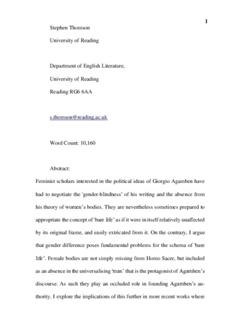 Feminist scholars interested in the political ideas of Giorgio Agamben have had to negotiate the 'gender-blindness’ of his writing and the absence from his theory of women’s bodies. They are nevertheless sometimes prepared to appropriate the concept of 'bare life’ as if it were in itself relatively unaffected by its original frame, and easily extricated from it. On the contrary, I argue that gender difference poses fundamental problems for the schema of 'bare life’. Female bodies are not simply missing from Homo Sacer, but included as an absence in the universalising 'man’ that is the protagonist of Agamben’s discourse. As such they play an occluded role in founding Agamben’s authority. I explore the implications of this further in more recent works where the female body does play an explicit role, in the form of the 'nymph’. Here I show that this insistently feminine figure, whose political implications have not often been considered, acts as a specular supplement to an ostensibly universal, but implicitly masculine, 'man’. I conclude by exploring the drama of castration in Agamben’s work on art as a function of the mastery to which his writing aspires, and which sits uneasily with his critique of sovereignty.