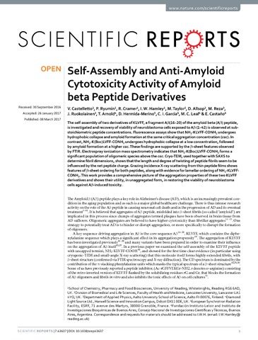 Self-assembly and anti-amyloid cytotoxicity activity of amyloid beta peptide derivatives.