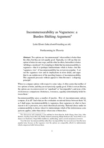 Incommensurability as vagueness: a burden-shifting argument.
