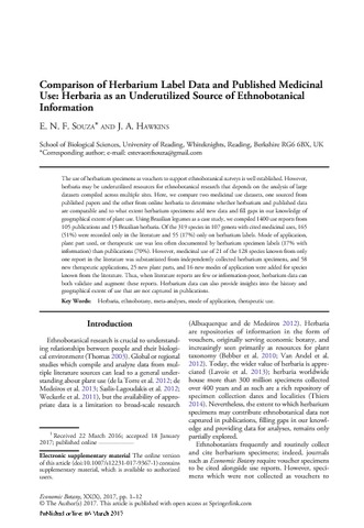 Comparison of herbarium label data and published medicinal use: herbaria as an underutilized source of ethnobotanical information.