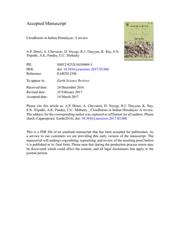 Dimri, A. P., Chevuturi, A. ORCID: https://orcid.org/0000-0003-2815-7221, Niyogi, D., Thayyen, R. J., Ray, K., Tripathi, S. N., Pandey, A. K. and Mohanty, U. C.