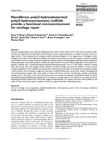 ORCID: https://orcid.org/0000-0002-1528-9332, Andriotis, O. G., Li, S., Basnett, P., Su, B., Roy, I., Tare, R. S., Sengers, B. G. and Stolz, M.