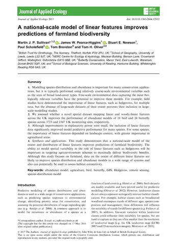 A national-scale model of linear features improves predictions of farmland biodiversity.