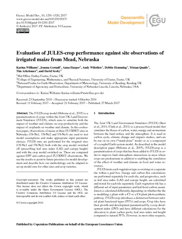 Williams, K., Gornall, J., Harper, A., Wiltshire, A., Hemming, D., Quaife, T. ORCID: https://orcid.org/0000-0001-6896-4613, Arkebauer, T. and Scoby, D.