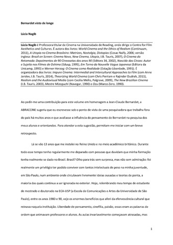 A crítica cinematográfica de Jean-Claude Bernardet certamente mereceria um lugar de destaque no cenário internacional. Mas, pelo menos no mundo anglófono, isto não aconteceu – ainda. Com exceção de alguns artigos e capítulos em coletâneas, sua vasta obra e contribuição inestimável para o cinema no Brasil e, por que não dizer, mundial continua na maior parte ignorada. A razão principal desse desconhecimento reside no perfil eminentemente francófono de Bernardet, francês de origem e cuja obra deixa patente a interlocução com o pensamento francês. Mas tivesse escrito em francês, suas ideias por certo teriam encontrado repercussão junto com a avalanche de literatura sobre cinema que os países anglófonos importaram da França, desde Bazin até a geração dos críticos/cineastas dos Cahiers du Cinéma que é também a sua. Não esqueçamos que como Truffaut, Godard, Chabrol e o resto dos Jovens Turcos Bernardet jamais separou a crítica da prática, tendo atuado em todas as áreas do fazer cinematográfico. Mas acontece que ele escreve em português, colocando uma barreira a mais à sua divulgação fora do contexto francês.