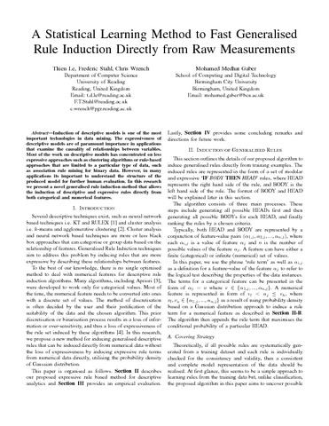 A statistical learning method to fast generalised rule induction directly from raw measurements.