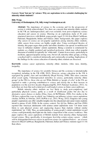 Careers ‘from’ but not ‘in’ science: why aspirations to be a scientist are challenging for minority ethnic students?