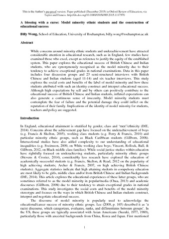 A blessing with a curse: model minority ethnic students and the construction of educational success.
