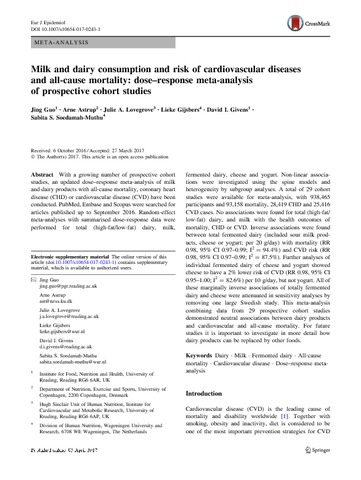 Milk and dairy consumption and risk of cardiovascular diseases and all-cause mortality: dose-response meta-analysis of prospective cohort studies.