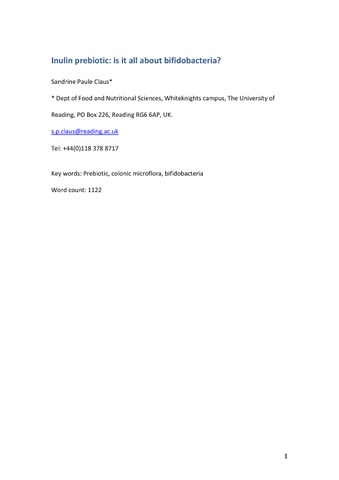 Claus, S. (2017) Inulin prebiotic: is it all about bifidobacteria? Gut, 66 (11). pp. 1883-1884. ISSN 1468-3288 doi: 10.1136/gutjnl-2017-313800