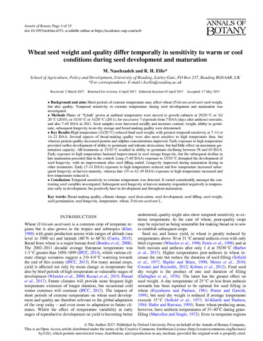 • Barber HM, Lukac M, Simmonds J, Semenov MA, Gooding MJ. 2017. Temporally and genetically discrete periods of wheat sensitivity to high temperature. Frontiers in Plant Science 8: 51 doi: 10.3389/fpls.2017.00051