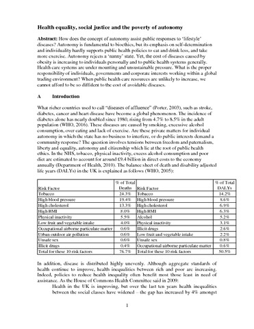 Newdick, C. (2017) Health equality, social justice and the poverty of autonomy. Health Economics, Policy and Law, 12 (4). pp. 411-433. ISSN 1744-134X doi: 10.1017/S1744133117000093