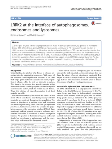Roosen, D. A. and Cookson, M. R. (2016) LRRK2 at the interface of autophagosomes, endosomes and lysosomes. Molecular Neurodegeneration, 11 (1). 73. ISSN 1750-1326 doi: 10.1186/s13024-016-0140-1