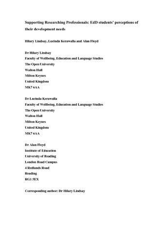 Supporting researching professionals: EdD students’ perceptions of their development needs.