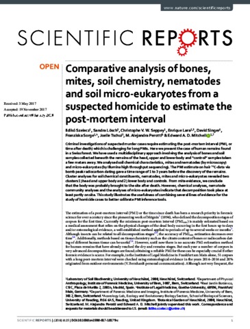 Comparative analysis of bones, mites, soil chemistry, nematodes and soil micro-Eukaryotes from a suspected homicide to estimate the post-mortem interval.