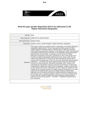 Mind the gap: gender disparities still to be addressed in UK Higher Education geography.