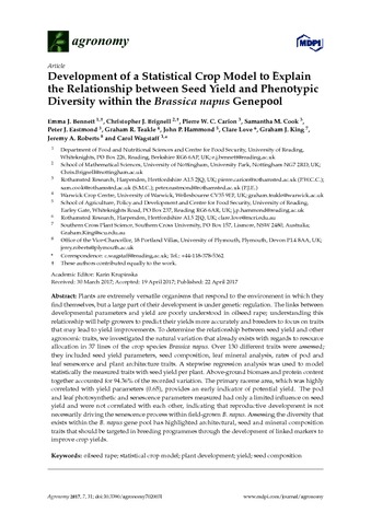 Development of a statistical crop model to explain the relationship between seed yield and phenotypic diversity within the Brassica napus genepool.