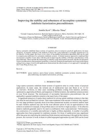 Improving the stability and robustness of incomplete symmetric indefinite factorization preconditioners.