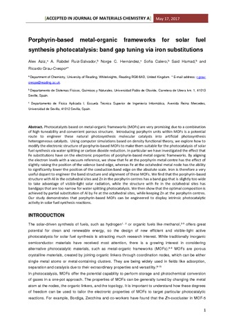 34. S. Hamad, N. C. Hernandez, A. Aziz, A. R. Ruiz-Salvador, S. Calero and R. Grau-Crespo, Journal of Materials Chemistry A, 2015, 3, 23458-23465.