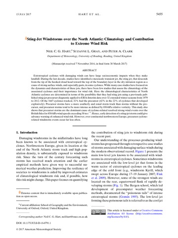 Sting-jet windstorms over the North Atlantic: climatology and contribution to extreme wind risk.