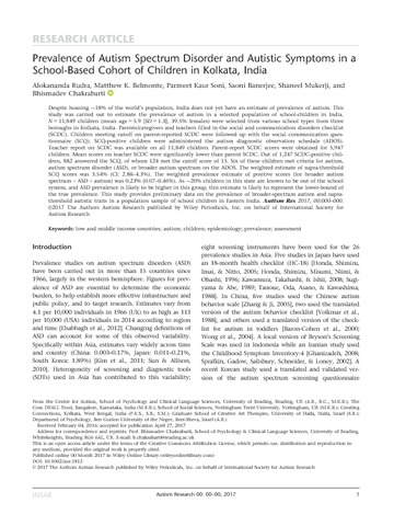 Prevalence of autism spectrum disorder and autistic symptoms in a school-based cohort of children in Kolkata, India.