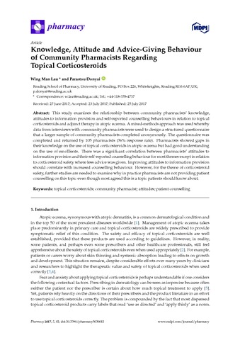 Knowledge, attitude and advice-giving behaviour of community pharmacists regarding topical corticosteroids.