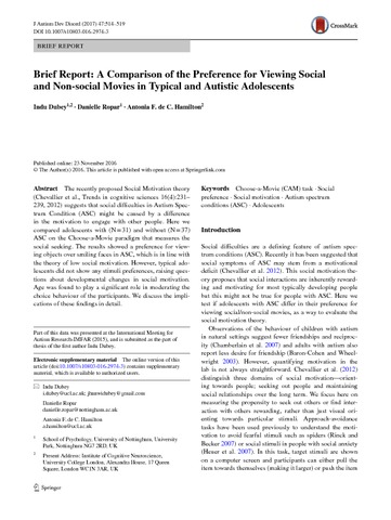 Brief report: a comparison of the preference for viewing social and non-social movies in typical and autistic adolescents