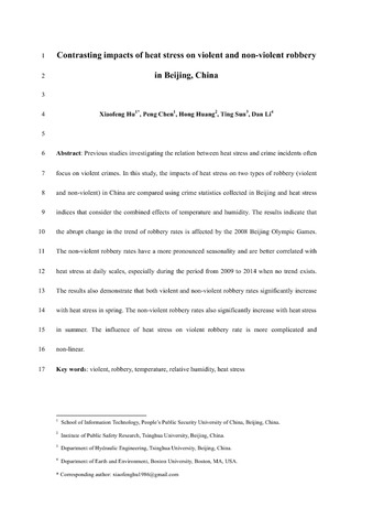 Contrasting impacts of heat stress on violent and nonviolent robbery in Beijing, China.
