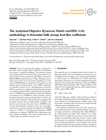 Sun, T. orcid id iconORCID: https://orcid.org/0000-0002-2486-6146, Wang, Z.-H., Oechel, W. and Grimmond, S. orcid id iconORCID: https://orcid.org/0000-0002-3166-9415 (2017) The Analytical Objective Hysteresis Model (AnOHM v1.0): methodology to determine bulk storage heat flux coefficients. Geoscientific Model Development, 10 (7). pp. 2875-2890. ISSN 1991-962X doi: 10.5194/gmd-10-2875-2017