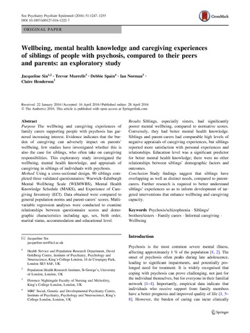 Sin, J., Murrells, T., Spain, D., Norman, I. and Henderson, C. (2016) Wellbeing, mental health knowledge and caregiving experiences of siblings of people with psychosis, compared to their peers and parents: an exploratory study. Social Psychiatry and Psychiatric Epidemiology, 51 (9). pp. 1247-1255. ISSN 0933-7954 doi: 10.1007/s00127-016-1222-7