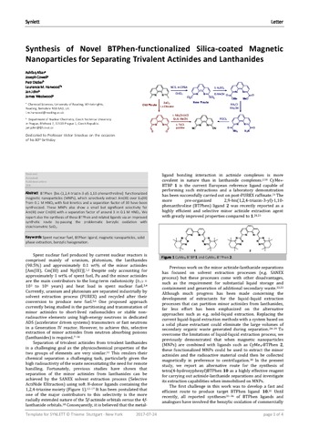 Synthesis of novel BTPhen-functionalized silica-coated magnetic nanoparticles for separating trivalent actinides and lanthanides.