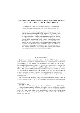 Bayart, F., Brevig, O. F., Haimi, A., Ortega-Cerdà, J. and Perfekt, K.-M. (2019) Contractive inequalities for Bergman spaces and multiplicative Hankel forms. Transactions of the American Mathematical Society, 371 (1). pp. 681-707. ISSN 1088-6850 doi: 10.1090/tran/7290