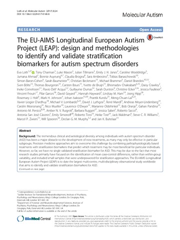 The EU-AIMS Longitudinal European Autism Project (LEAP): design and methodologies to identify and validate stratification biomarkers for autism spectrum disorders.