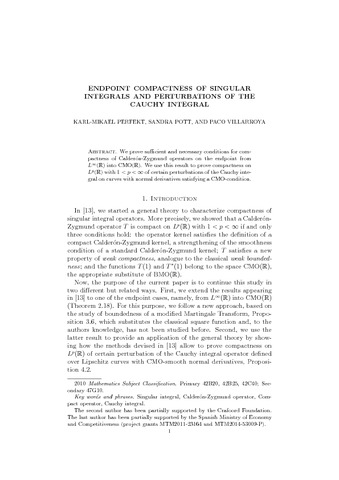 Perfekt, K.-M., Pott, S. and Villarroya, P. (2017) Endpoint compactness of singular integrals and perturbations of the Cauchy integral. Kyoto Journal of Mathematics, 57 (2). pp. 365-393. ISSN 2156-2261 doi: 10.1215/21562261-3821837