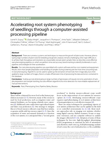 Accelerating root system phenotyping of seedlings through a computer-assisted processing pipeline.