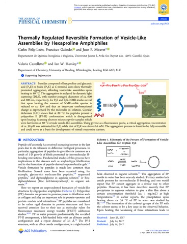 Thermally regulated reversible formation of vesicle-like assemblies by hexaproline amphiphiles.