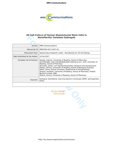 Three-dimensional cell culture of human mesenchymal stem cells in nanofibrillar cellulose hydrogels.