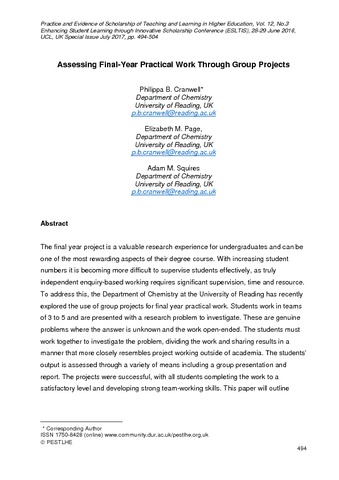 Assessing final-year practical work through group projects.