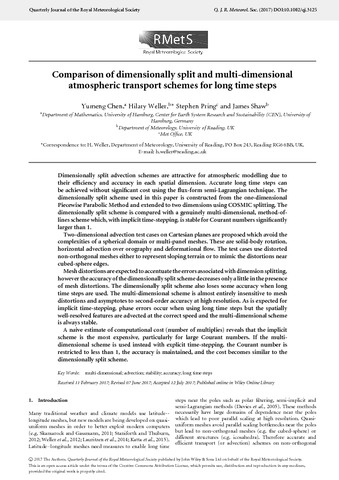 Comparison of dimensionally-split and multi-dimensional atmospheric transport schemes for long time-steps.