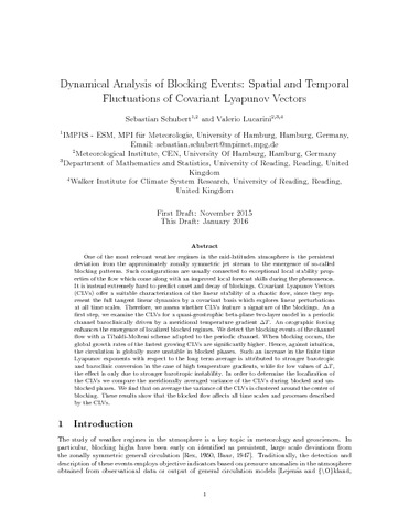 Uncontrolled Keywords | blocking patterns, quasi-geostrophy, covariant Lyapunov vectors, linear stability, Lorenz energy cycle |