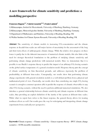 A new framework for climate sensitivity and prediction: a modelling perspective.