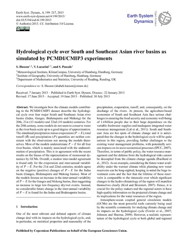Hydrological cycle over South and Southeast Asian river basins as simulated by PCMDI/CMIP3 experiments.