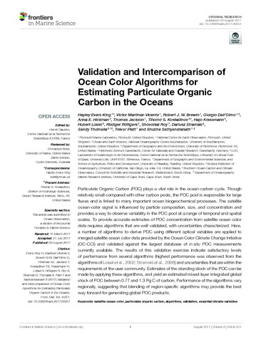 Validation and intercomparison of ocean color algorithms for estimating particulate organic carbon in the oceans.