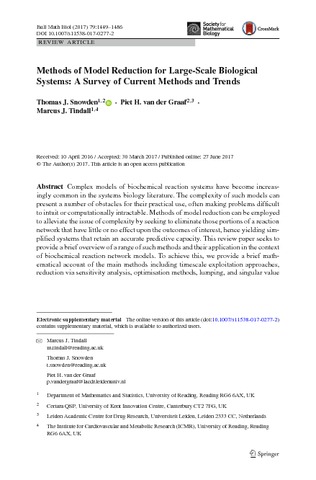 Snowden, T. J., van der Graaf, P. H. and Tindall, M. J. (2017) Methods of model reduction for large-scale biological systems: a survey of current methods and trends. Bulletin of Mathematical Biology, 79 (7). pp. 1449-1486. ISSN 1522-9602 doi: 10.1007/s11538-017-0277-2