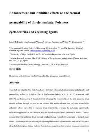 Rodríguez, I., Vázquez, J. A., Pastrana, L. and Khutoryanskiy, V. V. orcid id iconORCID: https://orcid.org/0000-0002-7221-2630 (2017) Enhancement and inhibition effects on the corneal permeability of timolol maleate: polymers, cyclodextrins and chelating agents. International Journal of Pharmaceutics, 529 (1-2). pp. 168-177. ISSN 0378-5173 doi: 10.1016/j.ijpharm.2017.06.075