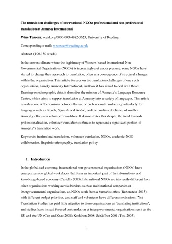 - Tesseur, Wine. 2014a. “Transformation through Translation: Translation Policies at Amnesty International.” PhD thesis, Aston University.