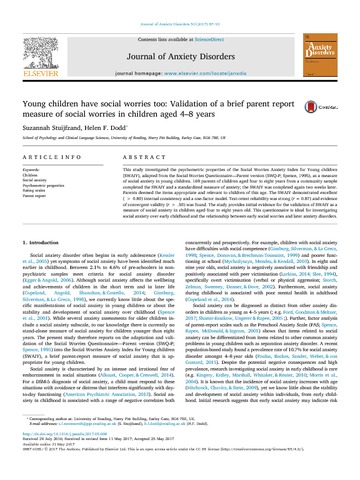Young children have social worries too: validation of a brief parent report measure of social worries in children aged 4–8 years.