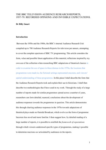 The BBC Television Audience Research Reports, 1957-1979: recorded opinions and invisible expectations