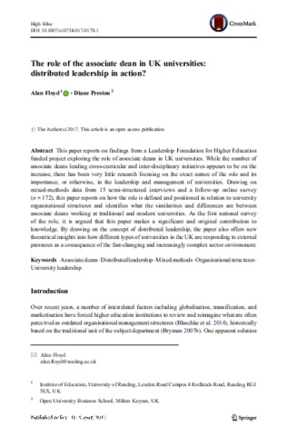 The role of the Associate Dean in UK Universities: distributed leadership in action?