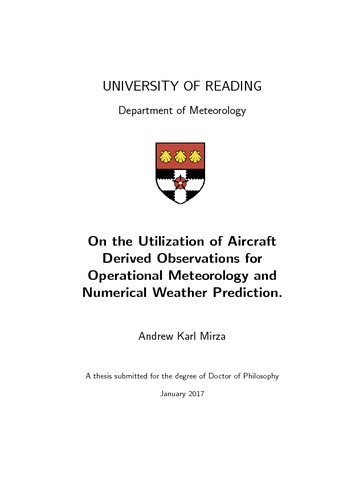 Mirza, A. K. (2017) On the utilization of aircraft derived observations for operational meteorology and numerical weather prediction. PhD thesis, University of Reading.